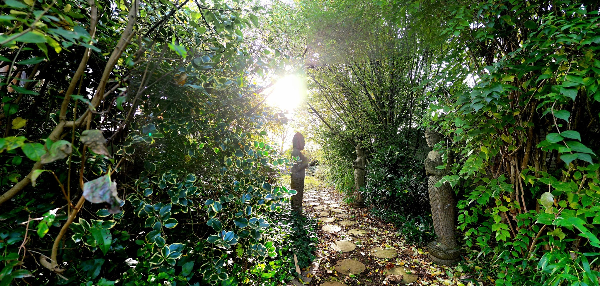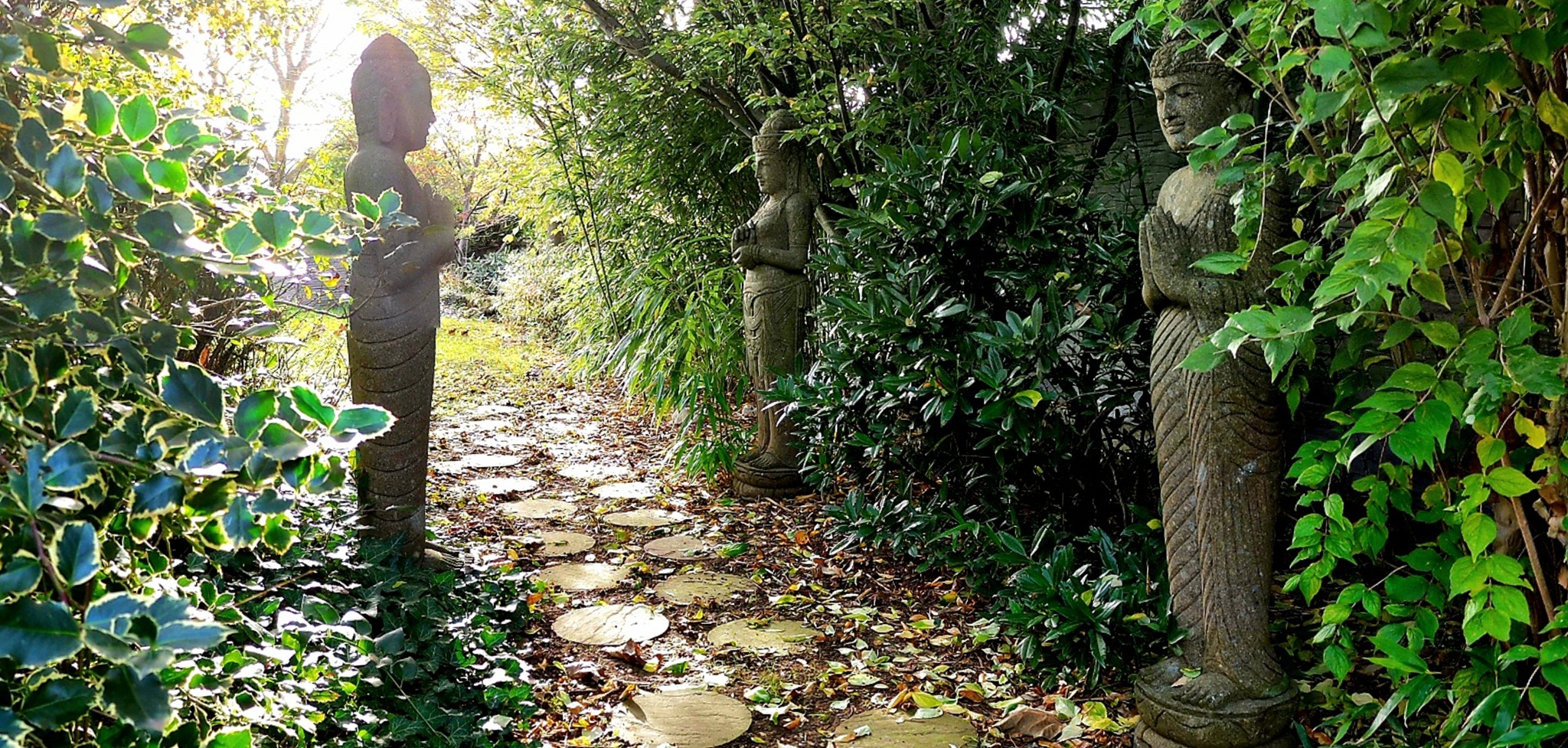 Steinbuddha und Dewi Sri im Garten Dewi Sri und Buddha aus frostfestem Basanit / Lava von Meisterhand geschlagen