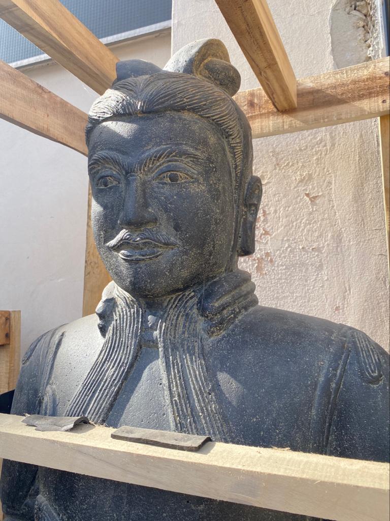 Chinesische Krieger von Meisterhand geschlagen aus frostfestem Basanitlava