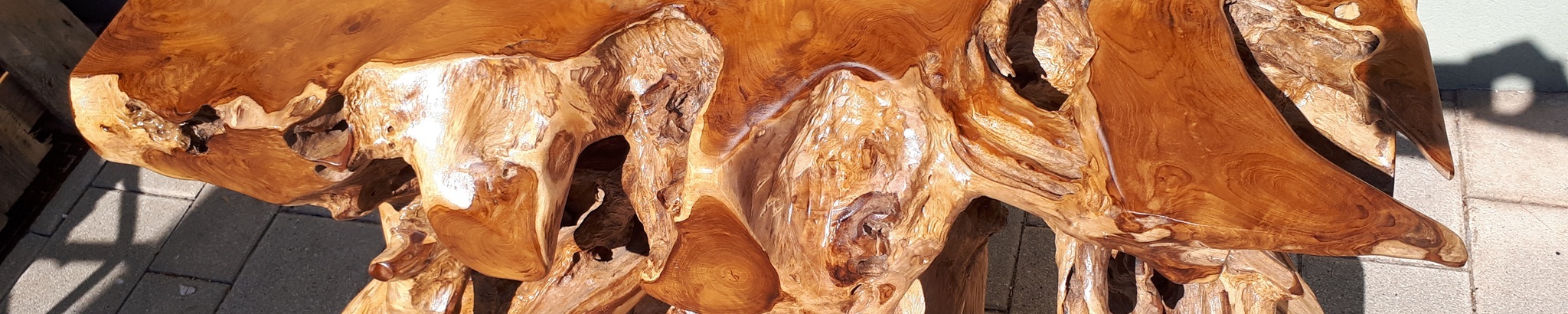 Teakholz - Der Teaktisch wurde aus der vollen Wurzel geschliffen und benötigt keine Glasplatte;